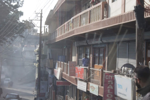 ஏதோ லாட்ஜின் அறைகள்னு நினைக்கிறேன். ஒன்றிரண்டு கடைகளும் பெயர்ப்பலகை தெரியுது. மேலே அறைகள். துணி உலர்த்தி இருக்கு.
