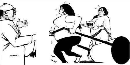உடம்பு இளைப்பதற்காகவா அவளை இந்தப் பாடு படுத்து கிறார்-கள்என்பது போல் என் கணவரைப் பார்த்தேன். அவர்உஷ்பேசாதே!’ என்பது போல ஜாடை காட்டினார்.