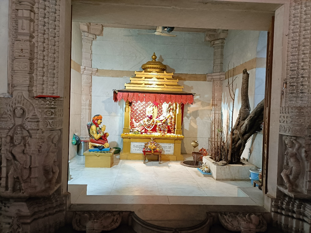 வேடனால் கொல்லப்பட்டதைச் சித்தரிக்கும் கோவில் கர்பக்ரஹம். அருகில் ஆலமர