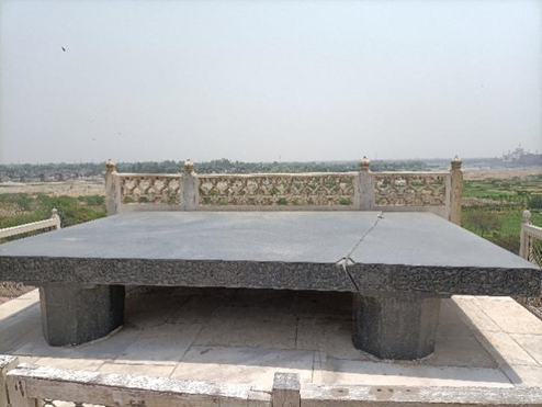 இந்தக் கறுப்பு, ஒற்றைக் கல்லால் ஆன, 10 ½ க்கு 10 அடி நீள அகலமும் 6 அடி உயரமும் கொண்ட இந்தப் பளிங்குக் கல்லுக்கு ஒரு வரலாறு உண்டு. அக்பருக்கு எதிராக அவரது மகன் சலீம் (அவர்தான் ஜஹாங்கீர்) 1602ல் எதிர்ப்புக் குரல் எழுப்பி, அலஹாபாத்தில் தானே மன்னர் என்று முடிசூட்டிக் கொள்கிறார். நாணயங்களைத் தன் பெயரில் அச்சிட்டு, அதனால் அக்பரின் தீராத கோபத்துக்கு ஆட்பட்டு, சலீம் மீது போரிட சிறிய படையை அனுப்பவும், சலீம் பயந்துகொண்டு, அக்பரிடம் மன்னிப்பு வேண்டவும், அக்பர் தன் அறைக்கு சலீமை அழைத்து வெளுத்து வாங்கினாராம். பிறகு சலீம் பெட்டிப் பாம்பாக அடங்கிக்கிடந்தாராம்.